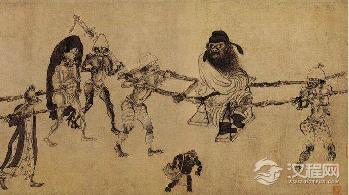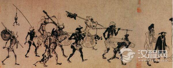 宋末元初 龚开的《中山出游图》 描绘了几种包袱的形象,其中一个小鬼的单肩背包不知是怎么做的