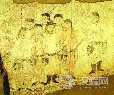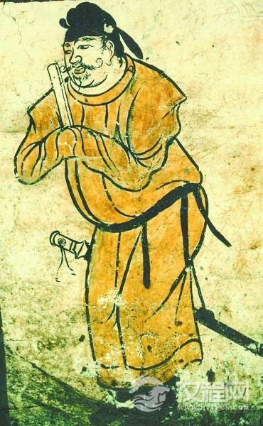腰间都挎个包的隋代官员(陕西潼关高桥税村隋墓壁画局部)