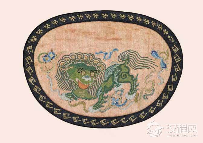 绶囊最常用的图案是兽头,故称“兽头鞶囊”。兽头中又以虎头使用为多,因此又有“虎头鞶囊”之称。东汉史学家班固在《与窦宪笺》中称:“固于张掖县受赐虎头绣鞶囊一双,又遗身所服袜三具,错镂铁一。”《东观汉记》也有类似说法:“邓遵破诸羌,诏赐遵金刚鲜卑绲带一具,虎头鞶囊一。”隋朝良娣以下命妇的专用佩饰。兽头囊,顾名思义,即是在囊袋上织有兽头纹样的佩囊。此囊袋在山东沂南的一汉墓画像石上可以看到,此石像画中一古人右腰革带垂下一做工精致,绣有花边的虎头纹样的佩囊。