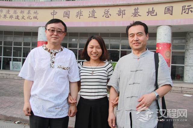 90后内画手艺人万俟欢与中国内画艺术大师董雪、安徽松石内画艺术院院长姜洪亮合影