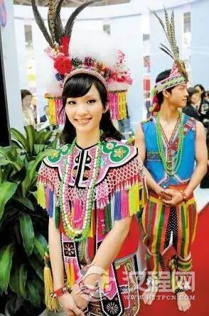 高山族妇女会染织各种彩色麻布,喜欢在衣襟、衣袖、头巾、围裙上面绣上精美的图案,还喜欢用贝壳、兽骨等磨制成各种装饰品。