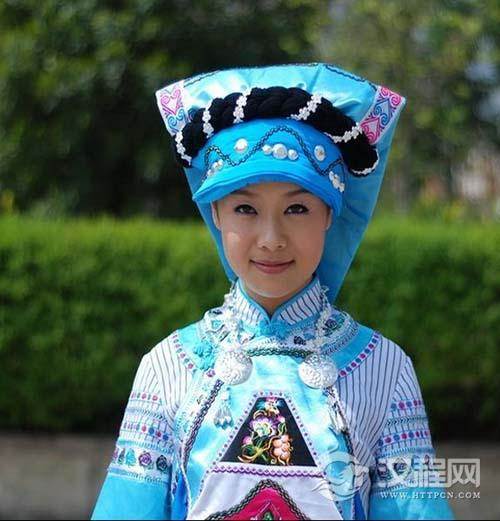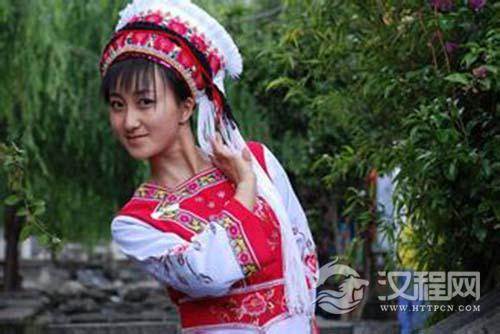 崇尚白色,服饰以白色为主色。白族姑娘头上戴的头饰上也有着“风花雪月”的含义。因为在白族少女的头饰上,垂下的穗子代表下关的风;艳丽的花饰是上关的花,帽顶的洁白是苍山雪,弯弯的造型是洱海月。