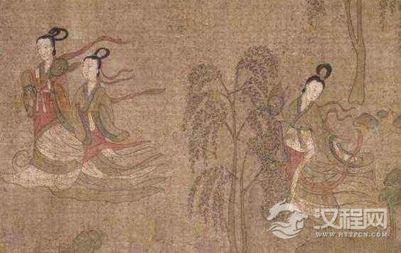 秦汉时期曲裾深衣是女服中最为常见的一种服式,这种服装通身紧窄、长可曳地,下摆一般呈喇叭状,行不露足。如穿几件衣服,每层领子必露于外,最多的达三层以上,时称“三重衣”。由于汉代内衣的改进,曲裾绕襟深衣已属多余,所以至东汉以后,直裾逐渐普及。由于深衣的普遍流行,穿襦裙的妇女有所减少,但并没有消失,在汉乐府诗中就有不少描写。这个时期的襦裙样式,一般上襦极短,只到腰间,而裙子很长,下垂至地。1957年在甘肃武威磨咀子汉墓中发现了襦裙实物。