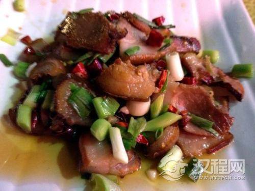安顺地方风味菜肴。明清年间军队行军打仗时,为方便贮藏和携带,将带皮鲜肉腌制成腊肉;在豆腐中加入猪血制作成型后腌成干制品,即是血豆腐。这种方法流传下来,每年腊月制作腊肉、血豆腐贮藏,放至春节及来年食用,常用来宴请宾客,数百年沿袭至今。