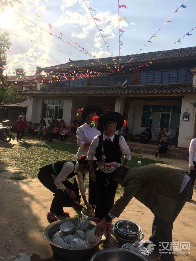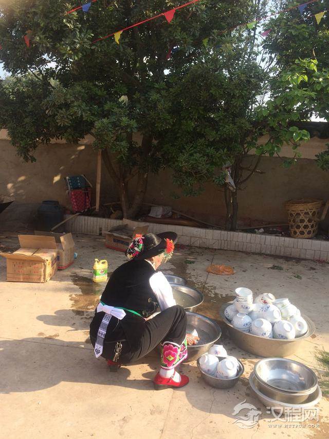 白族大妈在准备客人要用的碗