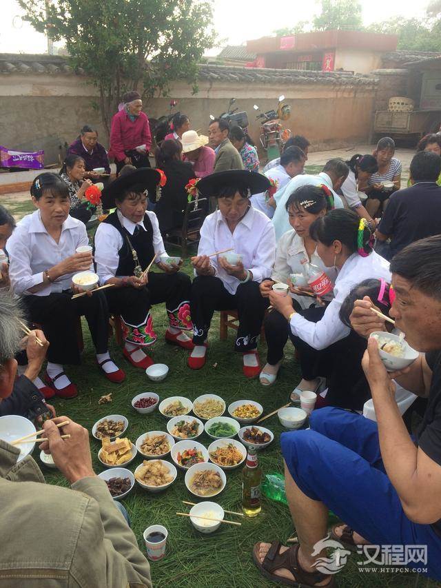 在特殊的日子里,白族人家都是在地上铺松毛当桌子吃饭
