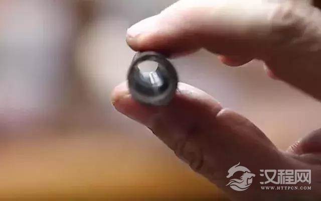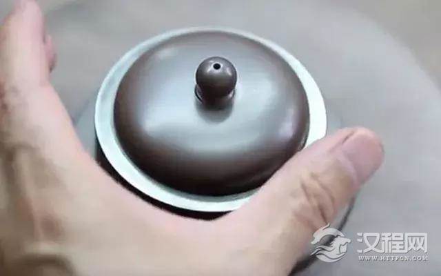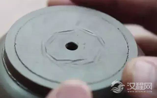 接下来需在壶纽的顶端中央戳一个小孔,然后翻转过来,取一把小弯刀,挖出一个狭长的锥形孔洞。再取一根象牙签,先用尖的一头正反两面捅一捅,使孔洞的壁面更光滑;然后用象牙签的圆头,在小孔的顶端轻轻一转,使孔沿处亦呈圆弧形,手法极为考究。有次孔洞,水气才能通畅。最后将壶纽安在壶盖的恰当位置,用一把专门卷“的脚”的小铁尖刀蹭出一条反弧线,这条反弧线与的脚的反弧线恰好是吻合的。
