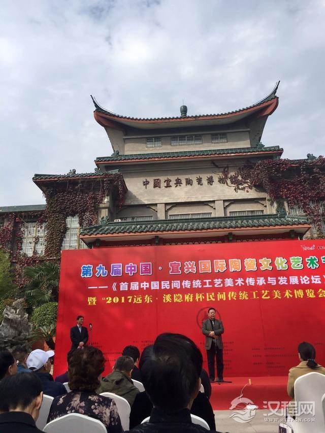 “首届中国民间传统工艺美术传承与发展论坛”暨“2017远东·溪隐府杯民间传统工艺美术博览会”昨天在宜兴陶瓷博物馆举行开幕式,来自中国工艺美术学会、教育部高校毕业生就业协会、国家非物质文化遗产保护专家组、清华大学美术学院、东南大学艺术学院、无锡市民间文艺家协会等组织和机构的专家学者聚会宜兴,共同探讨中国民间传统工艺美术传承与发展。