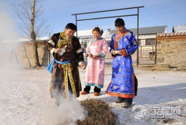 鄂伦春族:在东北的鄂伦春族人,春节早晨,先在家族中依辈份大小斟酒,幼者给长者叩头,平辈则互相请安,初二、初三进行赛马。正月十五美味佳肴。正月十六的早上,要进行相互抹黑脸的活动。青年人给老年人抹黑时要先叩头。