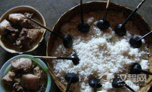 布依族的春节习俗:布依族在除夕前要准备粑粑、米酒等节日食品,除夕夜守岁至天明。雄鸡报晓,姑娘们争先恐后到河边担水,谁先担回第一担水,就说明她最勤劳、最幸福。