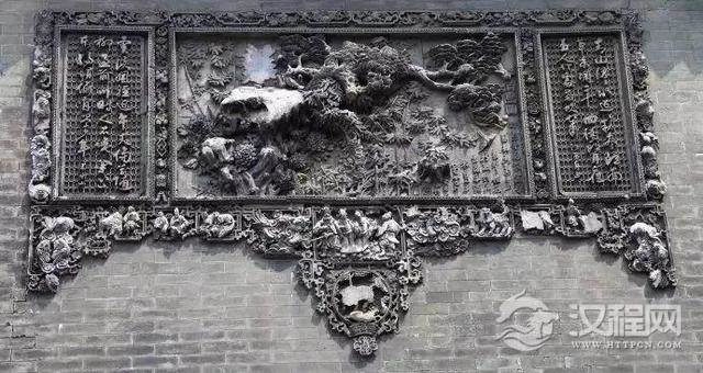 扬州为淮(盐)商聚居地,建筑以会馆为最,装饰了多处砖雕。它与扬州剪纸有共通之处,比较剔透玲珑。广州在清代光绪年间,曾建很多祠堂,砖雕随之发 展。如广东民间工艺馆所在地“陈家祠堂”,装饰着砖雕《五伦图》、《梧桐引凤》和人物故事等,出于当时工匠黄南山、梁进、杨进堂之手;佛山祖庙则有名匠郭道生、郭惠川的砖雕。