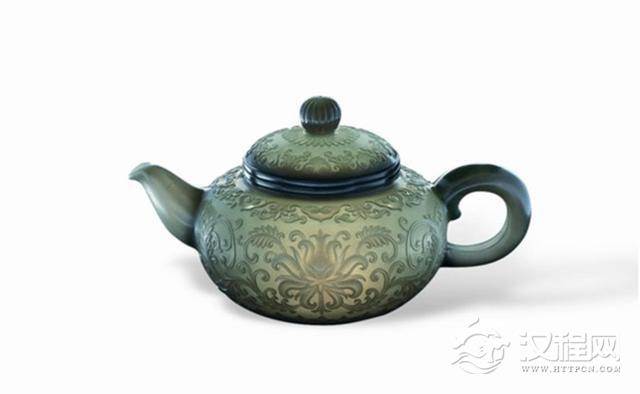 作品简介:壶形线条流畅、温顺,舒展,已得到写意式的变形,花朵即像莲花,也似佛手,吉祥文静,壶盖以莲叶纹和其他的花边为饰。整件作品端庄、稳重、有灵气、薄胎,薄可透视对面,雕工精湛。