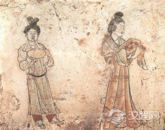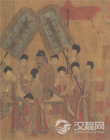 从传世《步辇图》中宫女看,可以知道:初唐衣着还多沿隋代旧制,变化不大。而伎乐已分坐部和立部。