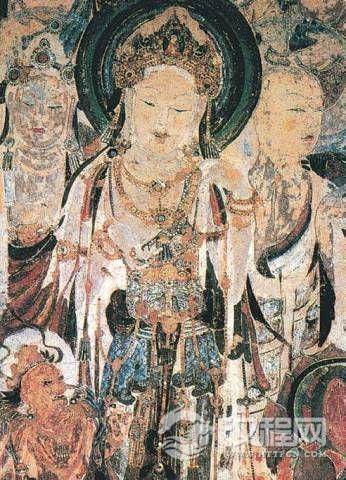 在服饰上大量用金的菩萨像(敦煌莫高窟第57 窟壁画局部,唐)