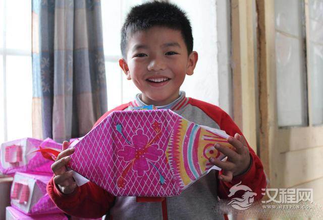 图为宋俊毅小朋友提着制作好的鱼灯笼。