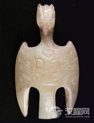 据《周礼、考工记、玉人》载:“玉人之事,缜圭,尺有二寸,天子守之。命圭,九寸,谓之桓圭,公伯守之。”周代在玉器上着意进行精雕细刻,严谨工整,线条较商代宛转自如,且渐繁杂,如人形、龙兽、鸟禽之类的眼形。