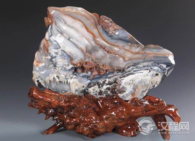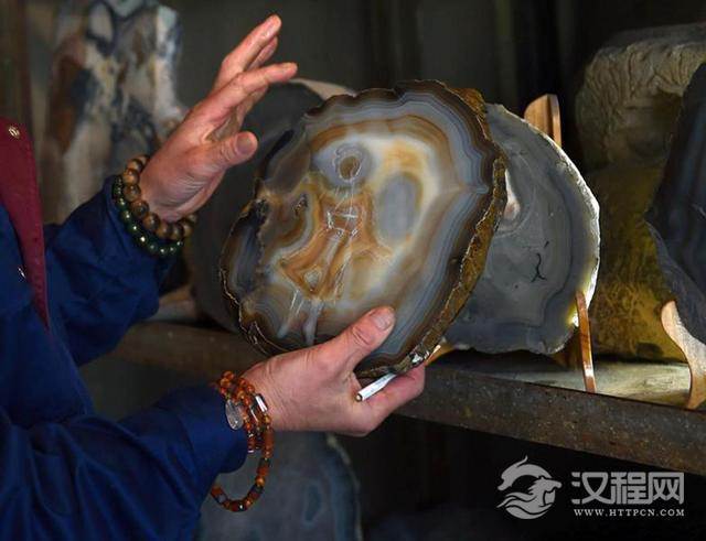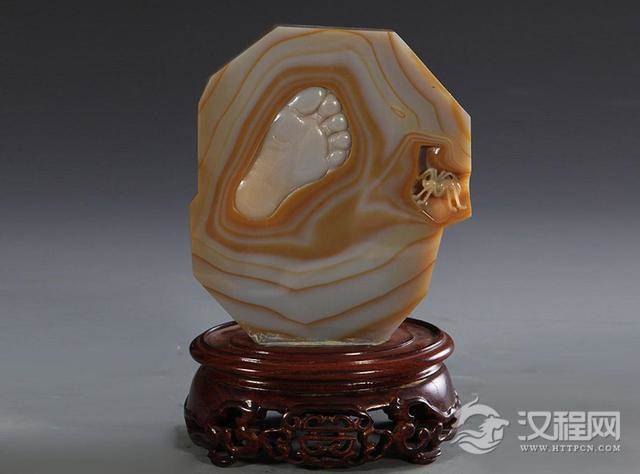 作品简介:这是一块属于比较特殊的天然玛瑙料,不规则的外形和弯弯曲曲的纹理线,为设计者带来全新的挑战,大师将其设计成由水中仰视脚踩水面的情形;水波涟漪,寓意时间如水,令人在观赏之中亦会随着一圈又一圈扩散的波纹联想自己的人生过程;利用小块色块巧雕一只蜘蛛,取谐音定名为《知足者常乐》。白色的水晶如同钻石,可遇而不可求,寓意“稳赚”,的天然的纹理与设计的理念形成绝妙的吻合,好似谜语一样,只有一个解。