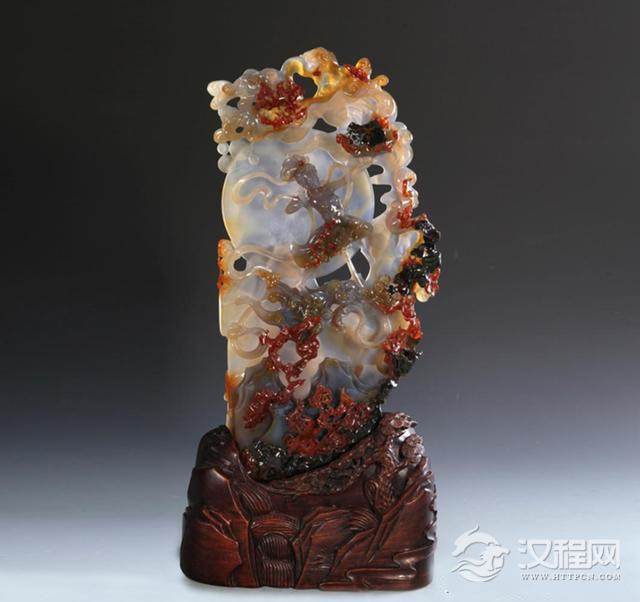 作品简介:恩泽环宇益万邦,济哺炎黄屹东方,苍窿炼补七彩玉,穹腾华龙国运昌。作品以“女娲补天”这一传统神话故事为题材,用玛瑙多彩的色泽表现这一震撼时刻,女娲踏祥云以严肃的神态、母性的慈爱,手托彩石腾空而起力补苍天,飘逸的丝带、升腾的火焰让整件作品充满动势,艳丽色彩给人以视觉的冲击,精致的雕工使之成为一件难得的艺术精品。