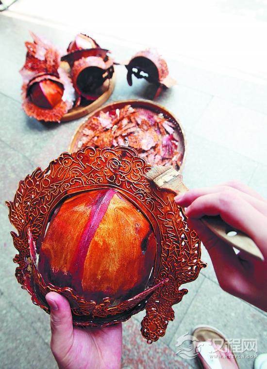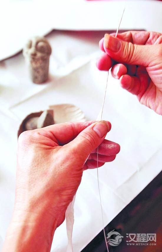 5.胶底粉线:上浓胶水,将黏稠状牛皮胶掺和石粉,用特制粉筒粉线。