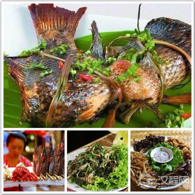 6,火烧鱼 傣族传统家常风味菜,特点是软嫩鲜甜,原汁原味。7,腌牛头傣族传统家常风味菜。,8,酸角 冬春两季,天高云淡,风清气爽,走进西双版纳的傣家村寨 ,很容易见到一种当地人们特别喜爱的果树——酸角,它树身高大,树干粗糙,枝叶扶疏,枝头挂着一串串、一嘟噜褐色的弯钩形荚果。,9,虫类食品 傣族地区潮湿炎热,昆虫种类繁多,用昆虫为原料制作各种风味菜肴和小吃,是傣族食物构成的一个重要部分。经常食用的昆虫有蝉、竹虫、大蜘蛛、田鳖、蚂蚁蛋等。