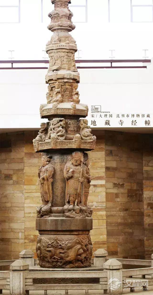 大理国经幢,又名“地藏寺经幢”。经幢造型优美,雕刻技术精湛,具有密宗佛教造像的特点,被誉为“滇中艺术极品”。