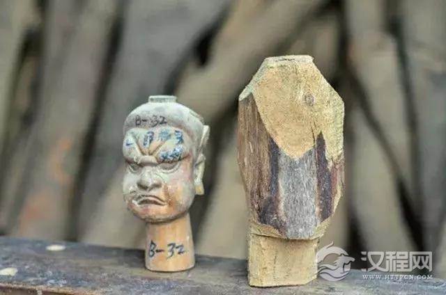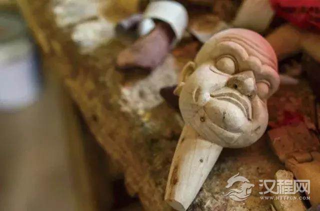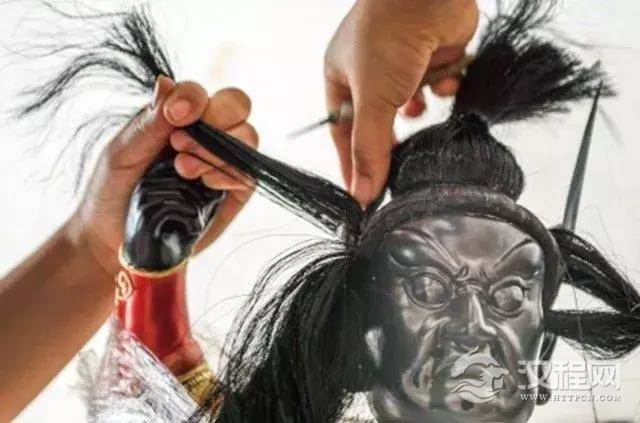 最后根据任务角色的不同,为木偶头梳发髻,装上胡须。