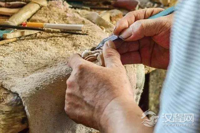 根据雕刻对象的主要形态特征,刻出大体轮廓,然后用刻刀逐步刻画出面部五官。