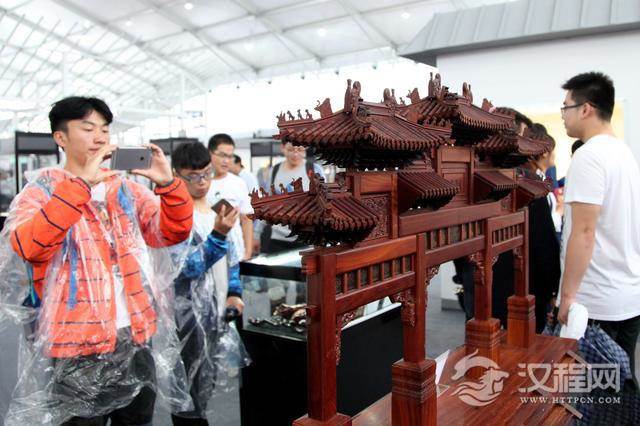 据悉,本届展览以非物质文化遗产雕刻类民间艺术作品为主,持续至9月10日。记者在现场看到:2000平方米的展馆,采用中国风的设计元素,以黑白水墨为主色,衬托水墨江南的古朴意境,与传统手工艺品相得益彰。展览以艺术品、雕刻工艺品为主,包括石雕、贝雕、玉雕、砚雕、竹雕、木雕、核雕、紫砂等。