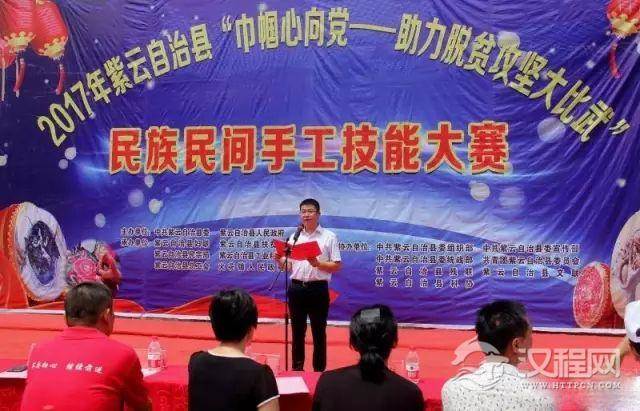9月7日,2017年紫云自治县“巾帼心向党——助力脱贫攻坚大比武”民族民间手工技能大赛在古村寨九岭隆重举行。大赛由中共紫云自治县委、县政府主办,设置刺绣、蜡染、剪纸、编织四个比赛项目,50名来自紫云当地板当、猴场等乡镇(街道办事处)的苗族、布依族民间“高手”同台竞“指尖技艺”。