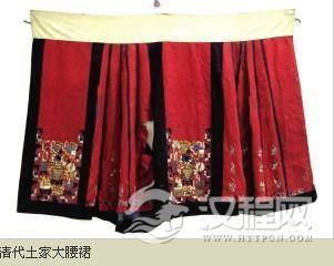土家民间服饰及床上用品主要工艺有刺绣、挑花、彩织等,其内容一般取材于民间故事和神话传说。而更多劳动妇女创作的绣品,却是按照自己的爱好和意愿,凭借对生活的观察和感受而设计、制作的。她们将一些象征五谷丰登、吉祥如意的图案绣于衣物、头巾、鞋帽、枕头、床单之上,用来美化装饰自己的生活,表达对美好生活的向往。