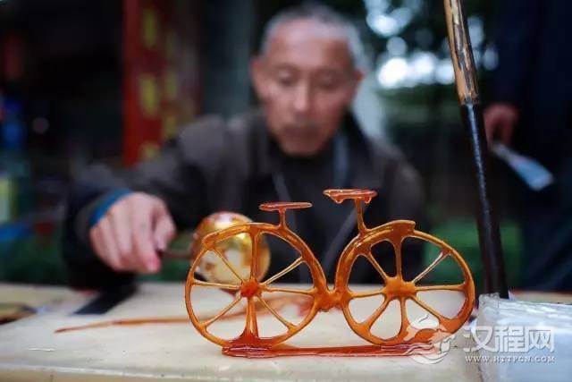 不仅能画出各种惟妙惟肖的动物,又能描绘生活中的实物,例如单车,锅铲等。最厉害的是,有些厉害的师傅能够一笔就勾勒出来,对于儿时的我们来说,既新奇又崇拜。那时没有什么玩具,这些糖人既成了我们的零食,也成了我们的玩具。