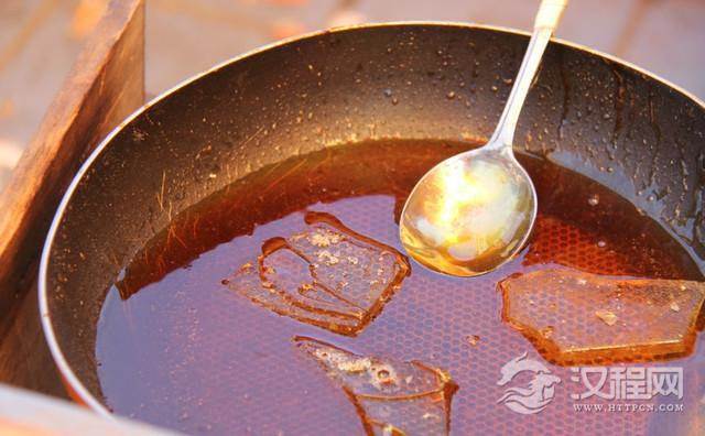 准备蔗糖,蔗糖颜色为红棕色。将糖放入锅内,加热融化,控制好火候并不断搅拌以免烧焦,差不多时就可开始画糖了。