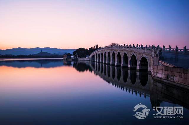 玉带桥:此桥位于内,全桥用汉白玉石建成,拱圈为蛋形,两侧雕刻精美的栏板和,通体洁白、线条流畅。远望犹如一条玉带点缀在碧波粼粼的上,被游客赞为"海上"。