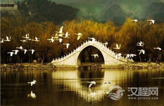 卢沟桥:坐落在北京西南约10公里之处,该桥因跨越在卢沟河上(今)因而得名卢沟桥。全桥均用白石建成,两边石栏雕柱各140根,石柱头上雕有蹲伏形态各异485只。