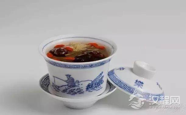 回族“八宝茶” 回族同胞常用此茶招待临门的贵宾。这种茶掺有杏干、桂圆、荔枝、葡萄干等,喝起来香甜可口,有滋阴润肺,清咽利喉之奇效。