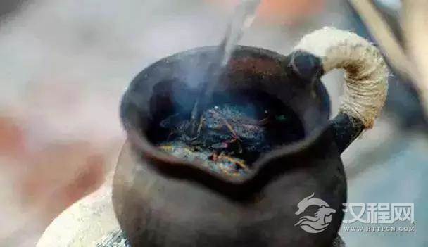 佤旗“苦茶” 其煮法是在大砂罐中一次放500克茶叶,一直煮到罐中剩下三五口茶水为止。然后等茶凉到一定温度,一口气喝下。茶水苦涩难忍,但喝后顿觉清凉爽口,回味无穷。