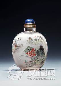 内画与鼻烟、鼻烟壶有深厚的历史渊源。鼻烟是将烟草精工泡制并混入香草、香料花露研制成褐黄色粉末,据传有“消寒辟疫”之功效,在明朝万历年间由意大利传教士利马窦以贡品的形式传入中国。到清代,这种宫廷用品传入民间,出现“人人相见递烟壶”的习俗,并且“争羡收藏器皿”,这种习俗促使鼻烟壶的制作越来越精良。1696年,极好鼻烟的康熙帝设立了中国第一个玻璃工厂,专门制作鼻烟壶,赏赐给大臣和外国使臣。鼻烟壶成为八旗子弟夸耀地位、身份的象征之一。乾隆末年,内画鼻烟壶诞生。内画使鼻烟壶工艺达到“寸幅之地具千里之势”的艺术效果,堪称精美绝伦。
