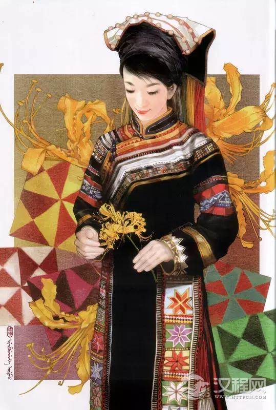 22、德昂族 (dé áng zú)(崩龙族)德昂族原名“崩龙族”。1985年9月17日经国务院批准正式改名为德昂族。“崩龙”是他称,意思是“石岩”。德昂族民间传统节日主要有泼水节、关门节、开门节、烧白柴等,大都与佛教活动有关。德昂族还有祭家堂、寨神、地神、龙、谷娘等祭祀习俗,其中以祭龙最富情趣。禁忌:妇女不与男客同桌吃,妇女不得在男子面前跷二郎腿。妇女衣裤不能晾晒在男人穿行地方。忌同姓婚姻,因为他们认为,只要同姓,就会有血统上的相同。血统相同的人相婚配,不利子孙后代的繁殖和健康。