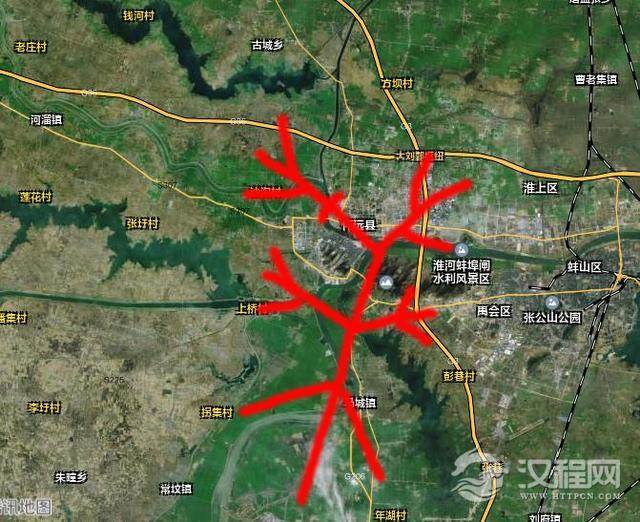 再看一下华字与涂山周边的地理环境的对于关系: