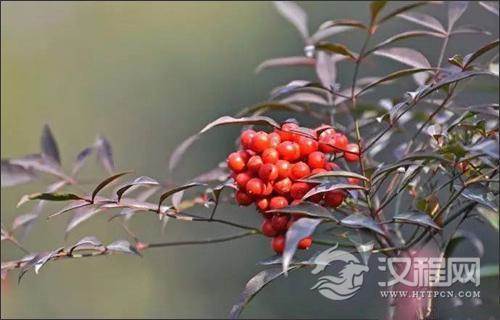 南天竹,常常出现在园林应用中,植株优美,果实鲜艳对环境的适应性强。秋冬季节枝叶染上秋色,红果累累,鲜艳夺目。春可赏嫩叶,夏可观白花,秋冬观红果,是很难得的四季皆美的园林植物。常常种植在庭院、池边、转角处。