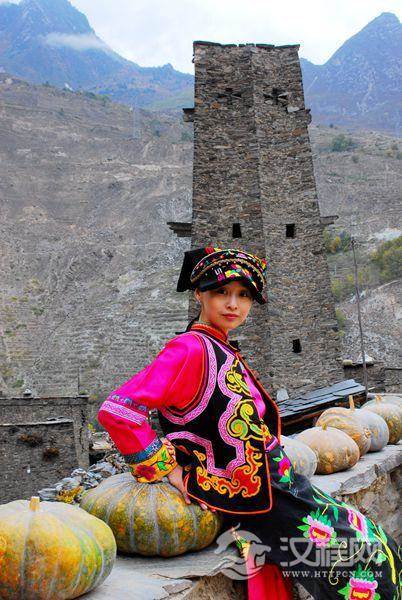 除了这些,身着羌族服饰的羌族妇女,忙碌欢笑在自己的家园里,犹如一道风景线着实迷人。