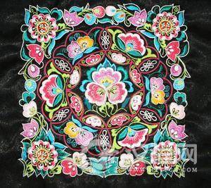 龙蛇崇拜——龙蛇纹。在中国古代龙一直作为一种吉祥的象征,经常以云龙、盘龙、二龙戏珠等形式出现。侗族以龙蛇为神灵,其服饰纹样中的龙纹不似古代朝廷龙纹那样庄严,而是一个善良灵巧且可爱的形象,以特殊针法,马尾绣做成,并赋予其精巧细腻的神韵。