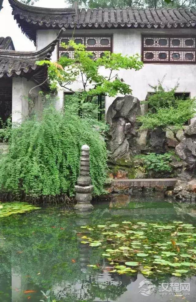 水是园林中一道难以抗拒的柔和之美,水上浮着翠绿的植物,花叶之下,成群的小鱼嬉戏玩耍,更是多了份灵动与情趣。