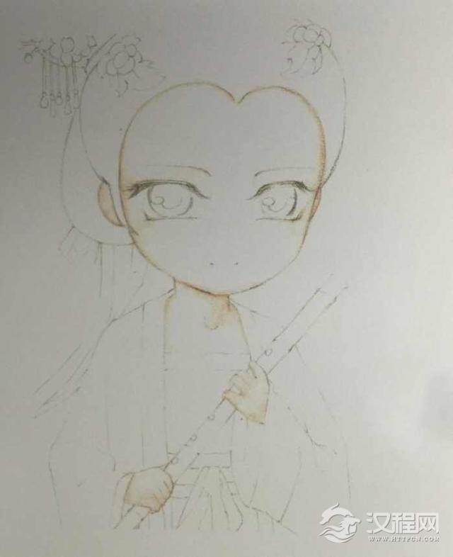 19、最后用478赭石、487熟褐、428朱红、483土黄来刻画手中的萧。