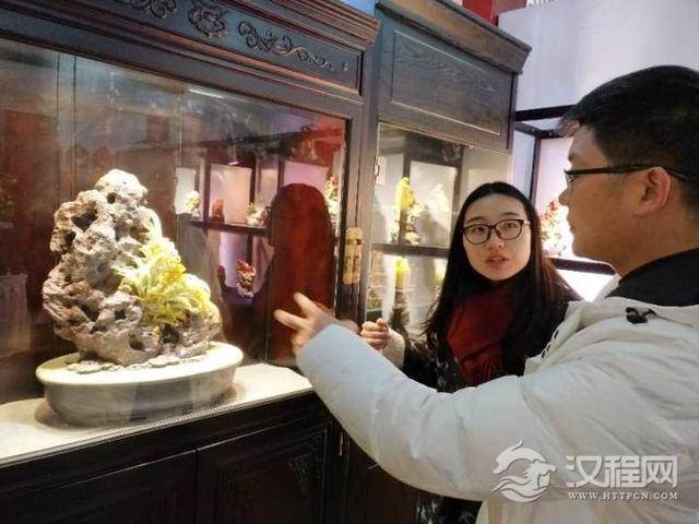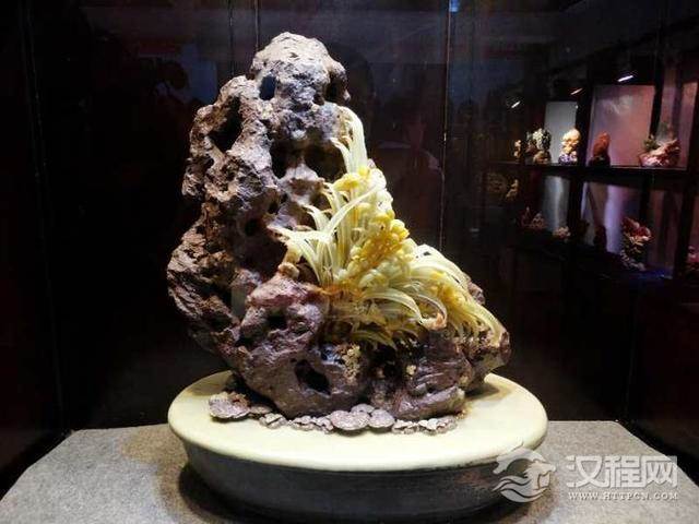 “这玉兰花和假山是拼凑起来的吧?”在A31展位,一件精美的作品引起了观众的好奇。在场的浙江省工艺美术大师周蒋利过来介绍道:“这是件龙蛋石作品,是在同一块石材上雕刻出来的。”为满足观众的好奇心,这个4年前就获得中国石雕十大年度艺术家称号的中年男子从展柜里取出一对半球形作品,记者仔细观察,那表面是石头,内部是精致的玉雕作品,两个半球形合在一块,却是一块普通得不能再普通的石头,令人啧啧称奇。