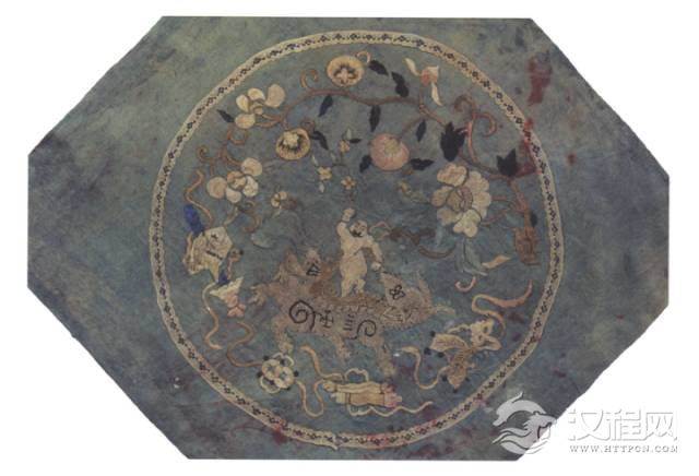 多子多孙也是古代织绣纹样中常见的装饰题材,其表现方法有多种,如借石榴多子,寓子孙繁盛;借葫芦多藤,寓万代长久;将莲化、童子、花生(或芦笙)组合成纹,取名为“连生贵子”;还有将莲花、莲蓬组合成纹者,取意与此相同。又童子跨骑麒麟、手持芦笙或莲花,取名为“麒麟送子”,隐喻麒麟自天而降、喜赠贵子。