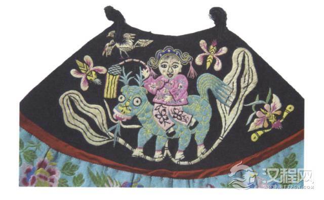 长命百岁、麒麟送子纹刺绣肚兜
