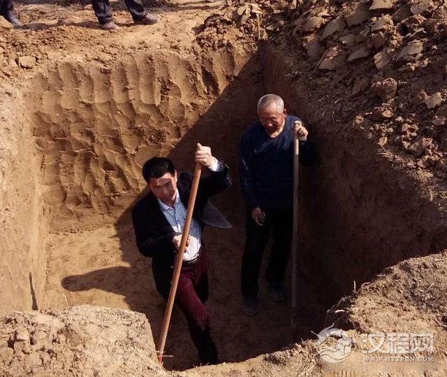 大家齐上阵,你干一会我干一会,瞬间一个长方形的墓坑就挖好了。