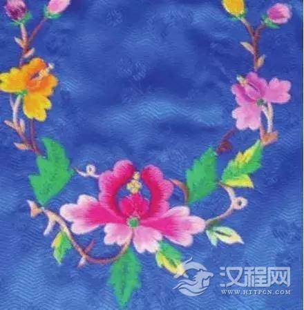 随着满族社会的发展、生产方式的改变和文化素质的提升,满族服饰在坚持实用性的同时,更加注重装饰性,并将两者完美结合。在入关以后,马蹄袖在的使用价值已基本丧失殆尽,但仍然将作为一种特色的装饰品,纳入清朝官员礼服的设计样式。同时,在袍服的制式、纹样、材质等方面都有了很大改进;旗鞋、缨帽的样式和种类也更加繁多;女性的服装配饰也得到了更加丰富,如女性旗袍的绣边、衣襟等,都绣有品种繁多的图案纹样,仅常用的就有兰花、桂花、牡丹(见图1)、菊花(见图2)等多达十几种图案。