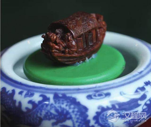 大连核雕代表性传承人韩志耀自幼师承家艺,其依据明代《核舟记》的文字记载,创作出“核舟”,结束了世人“只闻其文道其神,未见其物数百年”的历史,并在此作品的基础上,重新创作加大了工艺难度,八扇窗进行镂空处理,诗刻在船背上,舱内加刻了吹箫人、书童、客人等,人物达9人之多,比原核舟多出4人,作品中的3毫米茶壶心中空,且盖可以开启,壶腹与壶嘴相通,比文献记载的“核舟”更加完善,该作品获“山花奖”“民间工艺银奖”。